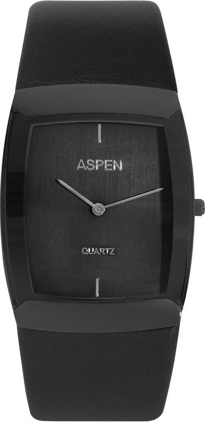 This Aspen Fashionable Analog Black Dial Men's Watch has a rectangular shape, a black dial and a mineral crystal glass cover. This attractive watch falls under the fashion category of the Aspen collection of watches. The dial of this watch has an intricate design that gives it a unique look, and the band of this watch is black in color, and made of leather. A date and time display has been included in the watch by its designers.