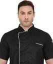 The Chef Coat is made up of Cotton Polyester Blended Fabric. This is a double breasted pattern chef coat with detachable Mushroom Buttons. The buttons can be removed as and when required. The Coat has one top pocket and one sleeve pocket. White piping is provided on collar and front side for better look.
