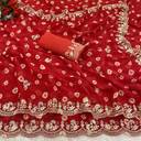 Embroidered Bandhani Georgette Saree (Red)