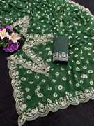 GEORGETTE FABRIC BANDHANI PRINT SAREE WITH EMBROIDERY WORK AND CUTWORK BORDER SAREE,TRENDING PITTA ZARI EMBROIDERY WORK SAREE