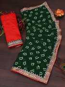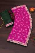 ASTEYAM Printed Bandhani Georgette Saree (Blue)