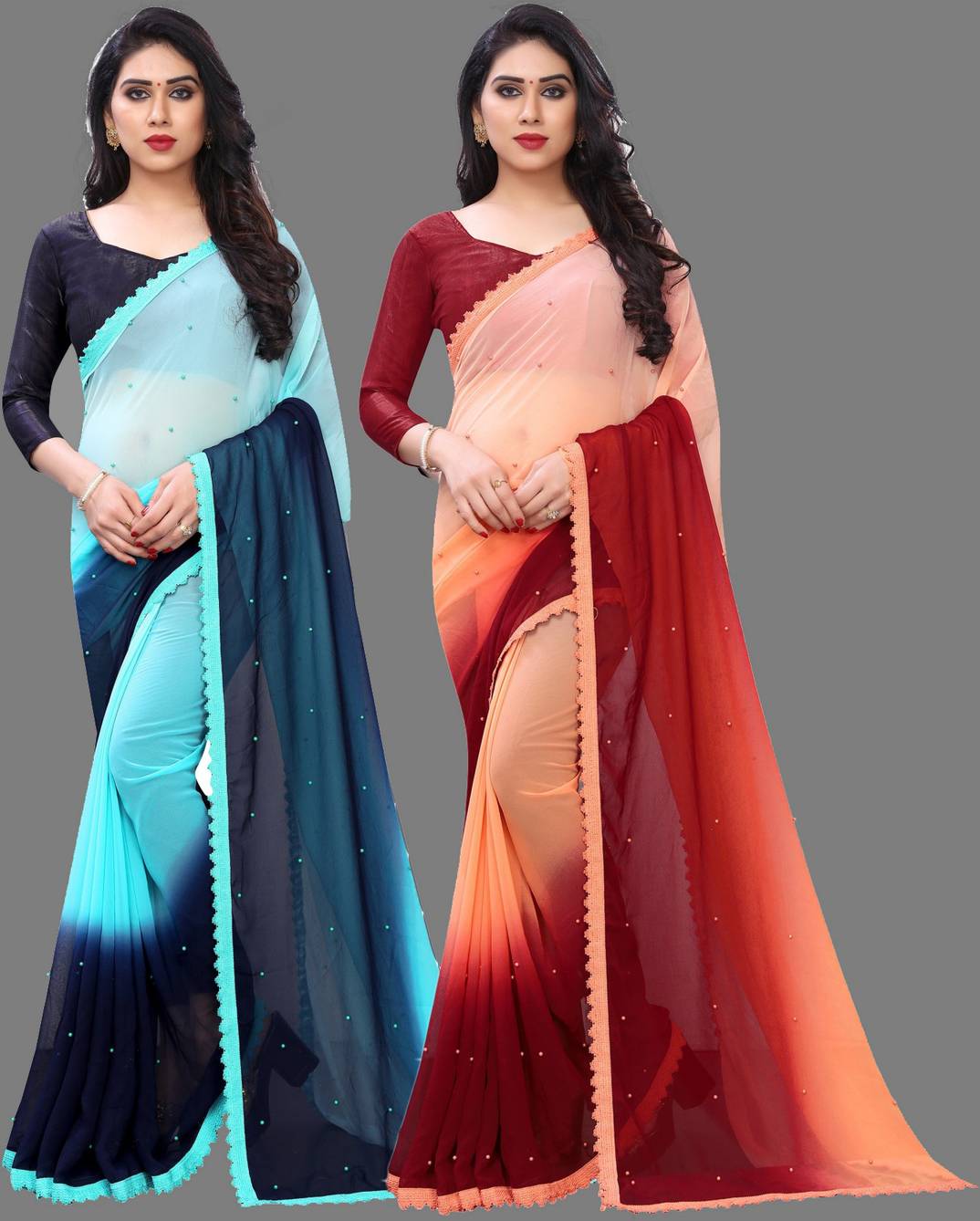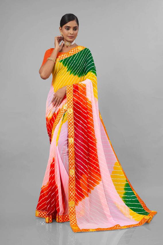 ASTEYAM Printed Leheria Georgette Saree (Blue)