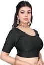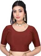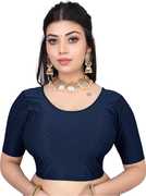 round neck dobby cotton lycra stretchable full sleeve readymade saree blouse for women stylish