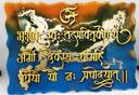 Beautifully handcrafted Gayatri mantra display board with golden MDF letters. Best for home temple or any corner of your home. The look is very inspiring. A must have for those who believe in daily prayers for the God Sun.