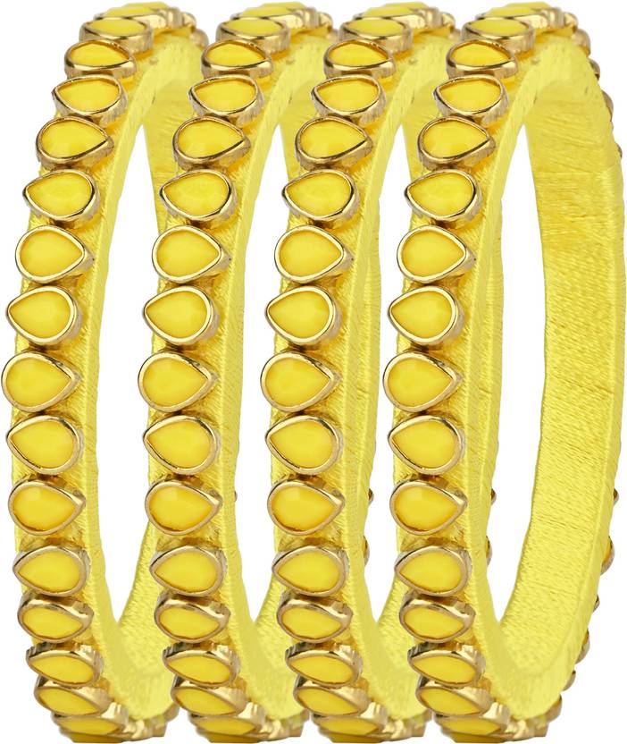 Silk Thread Flower Kundan Stone Bangles - Set of 2 - Pink