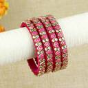 Silk Thread Petal Kundan Stone Bangles - Set of 2 - Pink
