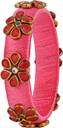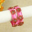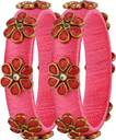 Silk Thread Flower Kundan Stone Bangles - Set of 2 - Pink