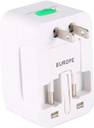 All-in-one Travel Adapter You do not need to carry separate chargers or have multiple adapters everywhere you go, This product is the perfect solution. The adaptor allows SIMULTANEOUS use of the AC Power Socket and Two SMART USB CHARGING Ports. It is the safest way to plug in your portable, non-grounded devices worldwide. It can be applied to a range of devices, including MP3 players, digital cameras, mobile phones, GPS, PDAs, travel speakers, etc Kindly note that Does not use with power appliances. Power Rating 6A max. 100-240Vac (660W max. at 110Vac. 1380W max. at 230Vac) Don’t use high appliances higher than max power rate such as flat iron, hair dryer, steam iron, hot iron water heater, coffee maker, etc. SAFE: Built-In safety shutters protect users from the direct touch of the live parts on the socket outlet. Material: ABS+Full copper with nickel Plating. When not using the adapter, please don't plug it in. Input: 100-240W / Output: 100-240W 6A MAX / Tear Off the Plastic Film From Surface Before Use Works in more than 150 countries including EU / AU/ UK / US / CN Protect your device from electric shocks worldwide with inbuilt surge protection technology.