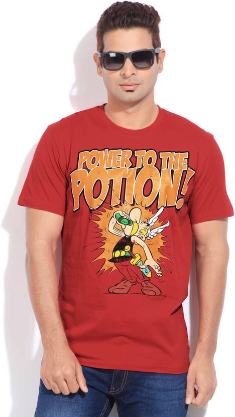 Men Printed Round Neck Cotton Blend Red T-Shirt