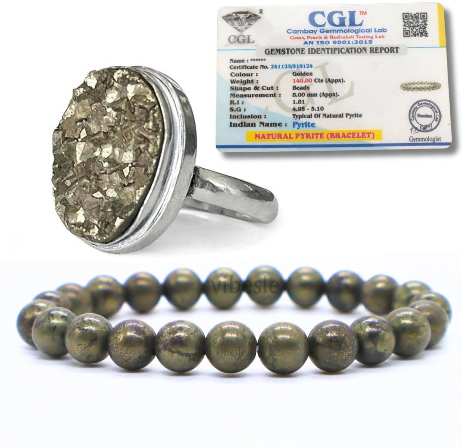 Genuine pyrite bracelet received It came with lab card for all dimensions and certificate for the pyrite stone. It's good for wealth manifestation and hence ordered Texture of the stone in bracelet is smooth and strong internally. Hope to get good results after using this bracelet