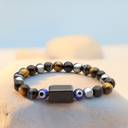 Tiger's Eye, Evil Eye, Black Obsidian Bracelet