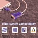 The converter supports RS232 communication protocol, allowing compatibility with devices featuring DB9 serial ports. It facilitates data transmission and control signals between your computer and serial devices, ensuring reliable connectivity for industrial, commercial, and personal applications.