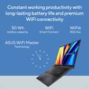 Owing to its 50 Wh battery, the Vivobook 15 OLED laptop allows you to be more productive or engaged for longer. Your Vivobook 15 OLED's WiFi 6 also has WiFi Stabiliser and ASUS WiFi SmartConnect, enabling rapid loading of web content.