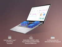 The ExpertBook P1 features a 13th Gen Intel Core i7 (H-series) high-performance processor, 32GB DDR5 RAM (expandable up to 64GB) with Dual SO-DIMM slots and 512GB M.2 PCIe 4.0 SSD (Dual SSD Slot support) onboard for seamless performance.