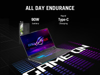 Equipped with a 90 Wh battery, this Strix G16 laptop offers extended unplugged usage, allowing for hours of web browsing. It supports USB Type-C charging up to 100W for flexible on-the-go power. When using the included 330W power adapter, the G16 can rapidly charge from 0% to 50% in just 30 minutes.