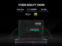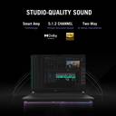 Dolby Atmos-powered speakers with two tweeters and two woofers create an authentic sound stage. Hi-Res audio ensures music quality, while Two-Way AI Noise Cancelation filters background noise for clear calls, chats, and streams.