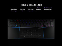 The Strix SCAR 16's esports-grade keyboard is built to last over 20 million presses, with n-key rollover for flawless commands. It features dedicated media controls, customizable hotkeys, per-key RGB, and Aura Sync for ultimate customization.