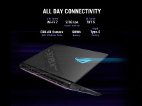 The Strix SCAR 16 features a 90Wh battery for extended video playback and web browsing. It supports USB Type-C power delivery up to 100W, making it easy to charge on the go without the included power supply.