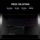 The Strix SCAR 18's esports-grade keyboard is built to last over 20 million presses, with n-key rollover for flawless commands. It features dedicated media controls, customizable hotkeys, per-key RGB, and Aura Sync for ultimate customization.