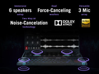 Featuring Dolby Atmos and a virtual 5.1.2 channel surround system, this laptop delivers an engrossing experience while watching and playing. Also, with three microphones, it offers optimal audio flexibility. Additionally, Two-Way AI Noise Cancelation in this laptop enables crisp and clear voice chat.
