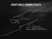 There are two USB 3.2 Type-A ports, two USB Type-C connectors, one of which supports power supply and DisplayPort 1.4, and four total ports. Additionally, for those who need to transfer data while on the go, the incredible Micro SD card reader is ideal, allowing for seamless data transmission.