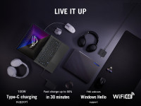 To complement the large 16:10 aspect ratio display, this laptop has a keyboard layout that is modelled after a desktop. ErgoLift lifts the keyboard at an angle to improve comfort while Overstroke technology initiates further in each keystroke for quicker responsiveness. Hotkeys for volume, microphone mute, and ROG Armoury Crate keep important commands close at hand. Additionally, completely programmable, the hotkeys can be used as macros, function keys, or to open certain programmes, allowing for a seamless user experience.