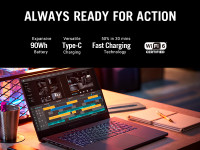 Owing to its up to 90 Wh battery, USB Type-C charging, and Wi-Fi 6E support, this laptop enables you conveniently carry it anywhere you want.