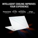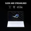 The intelligent cooling function of this laptop brings together suitable features and system settings to ensure that the chassis and the components of this laptop are cool, and you can play your favourite games for hours. This laptop features a liquid metal thermal compound to keep the CPU cool and a self-cleaning thermal module to clear out dust for improving its long-term stability. Also, the dual Arc Flow fans feature redesigned blades that can generate high airflow while making low noise. Furthermore, the ROG Armoury Crate software lets you switch between different operating modes seamlessly to optimise the performance and acoustics of this laptop.