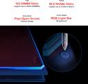 This is a stunning laptop that has been designed in collaboration with the BMW Designworks Group. Its low profile exterior ensures that it blends effortlessly with any surrounding. So, you can carry it to your workplace or any other place. It features a cyber-text patterning for a futuristic appearance, scissor-door hinges for a stable display, and slim bezels for immersive visuals. By turning on the Aura Sync lighting, you can enjoy a complete RGB experience with the illuminated keyboard and the wrap-around light bar.