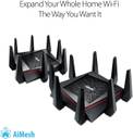 Even though the ASUS router is capable of offering smooth and reliable Wi-Fi connectivity to all your devices, certain factors like the layout of the room, furnishings, and construction materials of a home can affect the signal strength. Hence, this router uses the ASUS AiMesh feature to solve this problem. This feature uses several ASUS routers to create a powerful and stable Wi-Fi network throughout your home.
