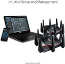 Your search for a reliable and stable wireless home internet connection ends here with the ASUS RT-AC5300 router. This 3200 Mbps router features a four-transmit, four-receive (4T4R) antenna design, which ensures you can enjoy lag-free internet connectivity on your connected devices. With the Adaptive Quality of Service (QoS) feature, you can assign full dedicated bandwidth of this router while you’re gaming so you don’t experience any lag while you’re gaming. Moreover, the ASUS router app lets you control the functions of this device remotely.
