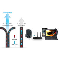This ASUS RT-AC68U Wi-Fi router supports USB 3.0 that offers data transfer speeds that are up to ten times faster than USB 2.0.
