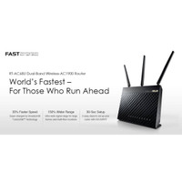 This Wi-Fi router is powered by 5th generation Wi-Fi (5G Wi-Fi) technology that features the 802.11ac chipset. This gives the RT-AC68U ASUS Wi-Fi router superfast Gigabit wireless speeds. The RT-AC68U uses TurboQAM technology to upgrade 2.4G Wi-Fi to deliver unprecedented speeds. At 2.4 GHz, this ASUS Wi-Fi router is 33% faster than generic wireless-N900 routers, reaching 600 Mbps. On the 5 GHz band, this router accelerates to 1300 Mbps - or triple 802.11n rates.