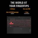 The TUF logo on this laptop has been laser-sculpted for a stylish finish. Adding to the charm of this laptop design is a sizable touchpad with accents and four-way indicators.