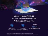 ASUS Antimicrobial Guard Plus is applied to frequently touched areas of your laptop to help keep it hygienic. This technology uses a denser treatment that inhibits viruses and bacteria. And it is scientifically shown — using the ISO 2170211 and 2219612 standards — to inhibit virus and bacteria growth by more than 99% over a 24-hour period4. Strains used for the tests include the SARS-CoV-2 (COVID-19), H3N2 (Influenza A), and the E. coli bacterium.