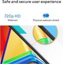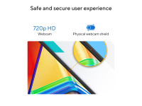 Integrated privacy shield slides over the 720P HD webcam for instant privacy protection against prying eyes and disturbances.