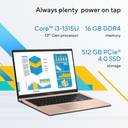 With Vivobook 15, you’re always ready to take on any everyday task, whether it’s work, play, or entertainment. Whatever you need to achieve, there’s always plenty of computing power on tap with up to a 13th Gen Intel Core U-Series processor, DDR4 of fast memory, PCIe SSD storage, and a comprehensive range of wireless connectivity up to WiFi 6,E allowing you to load online content in the blink of an eye.