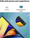 You can stay away from the prying eyes or disturbances caused during a video conference, thanks to the integrated privacy shield slide over the webcam.