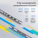 Featuring a slim and lightweight design, this laptop can be conveniently carried in a backpack or with one hand. Additionally, its use of eco-friendly Post-consumer Recycled (PCR) materials promotes sustainable practices and reduces its environmental impact.