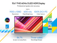 Sporting an OLED display, this laptop offers high colour accuracy, a wide colour spectrum, and motion clarity, making it an excellent choice for professional and artistic work. Additionally, the display incorporates organic light-emitting molecules that effectively reduce harmful blue light emissions, providing extra protection for your eyes.