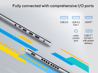 Owing to its wide range of I/O ports, including a USB Type-C 3.2 Gen 1 port with power delivery, two USB Type-A 3.2 Gen 1 ports, a USB 2.0 port, HDMI output, and an audio combo jack, this laptop is easy to connect to all your existing displays, peripherals, and projectors.