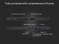 There’s a Thunderbolt™ 4 with supports display/power delivery, two USB 3.2 Gen 1 Type-A ports, HDMI® 2.1 port to connect external monitors, standard SD card reader and an audio combo jack — so it’s easy to connect all your existing peripherals, displays and projectors.