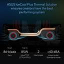 With enhanced 8 mm and 6 mm heat pipes and two fans, ASUS IceCool Plus thermal technology on the Vivobook Pro 15 OLED efficiently speeds up heat transmission for reliable performance. Aside from that, the 86-blade fan and impeller help the device run quietly and efficiently, and the 3D-curved blade design increases airflow by up to 16%. Additionally, the Intel Core CPU and NVIDIA GPU can run in Performance mode with a combined TDP of up to a blistering 85 W without overheating or excessive vibration.