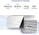 The exquisite solid metal frame and striking raised brand badge give the Vivobook Pro 15 OLED a sleek appeal. The Enter key with the warning stripes underneath gives the gadget a unique look and feel. Additionally, the strong 180-degree hinge design enables you to lay it flat on a table for group projects so that you can wow friends or coworkers with your creations or professional output.