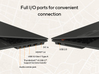 The I/O port section of this laptop, which is built like a stack of building blocks, offers a flawless link to the outside world and has all the connectors you need to connect your peripherals, screen, or projector. The lightning-fast Thunderbolt 4 USB-C connector supports 8K external monitors and offers data transfer rates of up to 40 Gbps. Additionally, there is an audio jack for increased convenience, an HDMI 1.4 connector for connecting external displays, and a USB 3.2 Gen 1 Type-A interface that supports 5 Gbps transfer rates.
