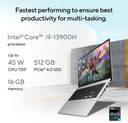 The 13th Gen Intel® H-Serie processor and LPDDR4 memory deliver revolutionary high performance for smooth streaming, work and play, bringing all the computing power you need. The Vivobook S 15 OLED is an Intel ® Evo™ certified notebook 10 packed with features that make everything easier, including fast charging, all-day battery life, ultra-fast connectivity, instant wake-up, and amazing Performance, all in a portable body.