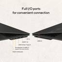 If the I/O port area of the Vivobook S 15 OLED looks a bit different, that's because that's how we built it. Designed like a stack of building blocks, it's the foundation of your connection to the outside world, with all the ports you need to connect your peripherals, screen or projector. The ultra-fast Thunderbolt™ 4 USB-C ® port delivers data transfer speeds of up to 40 Gbps and supports 8K external displays. There's also an HDMI ® 1.4 port for external monitors, a USB 3.2 Gen 1 Type-A port supporting 5 Gbps transfer speeds, and an audio jack for added convenience.