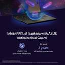 The surface of any laptop harbors thousands of potentially harmful bacteria. To keep your laptop hygienic, it's protected by ASUS Antimicrobial Guard – a special surface treatment that keeps the bugs at bay. In fact, Antimicrobial Guard has been scientifically proven to inhibit the growth of bacteria by more than 99% over a 24-hour period, ensuring the surfaces of your laptop clean and sanitary for longer and reducing the spread of potentially harmful bacteria via contact.