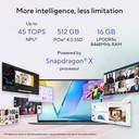 This ASUS Vivobook S16 offers exceptional portability with a slim, lightweight, premium metallic design. Powered by a Snapdragon X Series Processor and Windows 11, it provides smooth multitasking and over 32 hours of battery life. It features a 16:10 FHD+ OLED Anti-glare display, TUV Rheinland-certified for low blue light, Windows Hello facial recognition, and Dolby Atmos audio. Connectivity includes USB 4.0 Type-C and HDMI 2.1 ports, plus a smart touchpad. It comes with Windows 11 Home, lifetime Microsoft Office Home 2024, M365 Basic, 100 GB cloud storage, and McAfee Anti-virus. Built to MIL-STD 810H military standards, it ensures reliability and a seamless cross-device experience with Microsoft Phone Link.