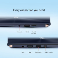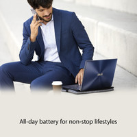 The ASUS ZenBook 14 boasts a high-capacity 50 W Li-polymer battery which offers you 12.3 hours of performance, so that you can continue your work or enjoy a movie without looking for charging ports wherever you go.